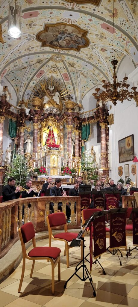 Am vierten Advent verwan­delte der Musikverein Marktleugast die Basi­lika Mari­en­wei­her in einen Ort der Besin­nung, der Gemein­schaft und der musi­ka­li­schen Viel­falt. Rund 260 Besu­che­rin­nen und Besu­cher folgten der Einla­dung zum tradi­tio­nel­len Weih­nachts­kon­zert, das bei freiem Eintritt statt­fand und von einer  feier­li­chen Stim­mung geprägt war.